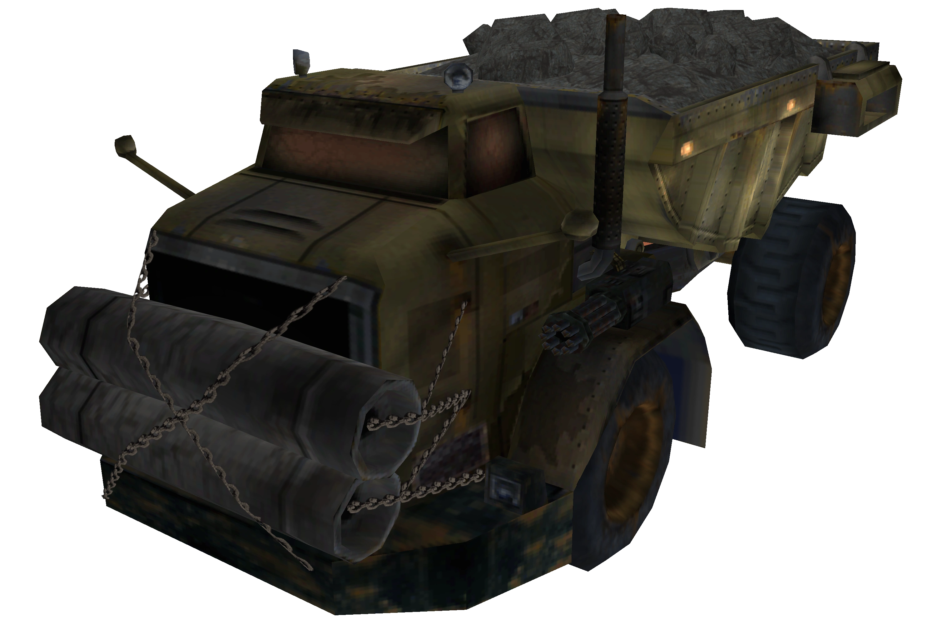 The rocks in the bucket of his dump truck are heated up and launched straight forward to create a devastating wall of destruction. The rocks are evenly spread out, making this Special Weapon ideal for striking multiple enemies, even at long distances. When rear-fired, ManSlaughter simply lifts up the bucket and dumps the explosive rocks as a normal dump truck would. This attack, much like a gas can, can be cooked to deal more damage. The rocks deal more damage the longer they linger; they can even kill a max health Mr. Grimm at max damage.
