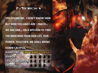 "You found me. I don't know how but now you and I are linked... we are one... on a mission to find the man who took our life, our power. Together, we shall bring down Calypso."