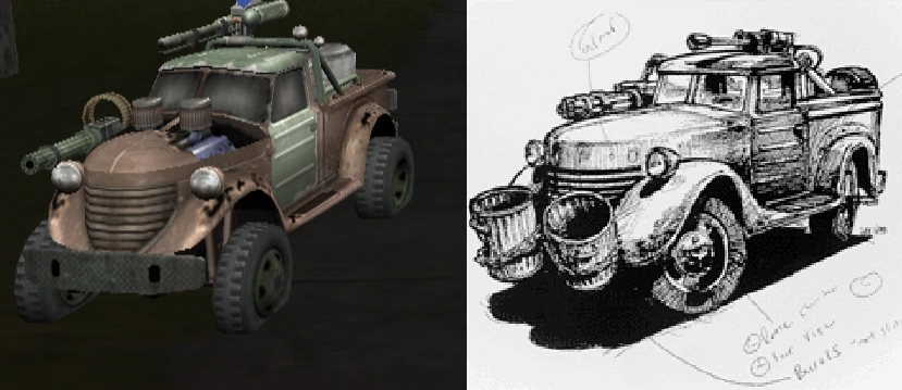 Old Pickup compared to one of the rejected concept art from TM: Black.