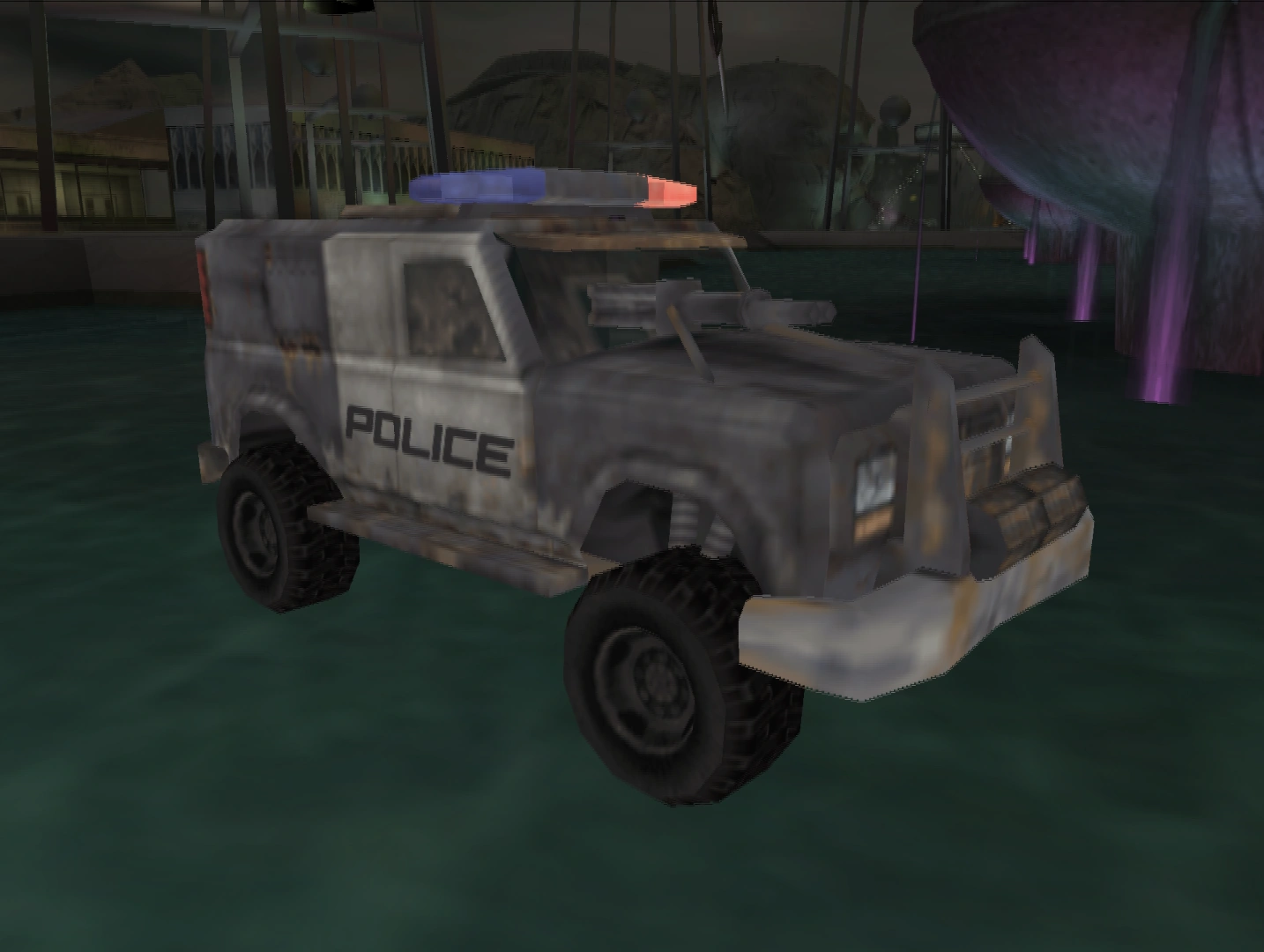 These car models were left in the files, but can only be accessed by editing the game to include them. They have no special weapons of their own as they are not programmed to be in the game, and have likely been scrapped.